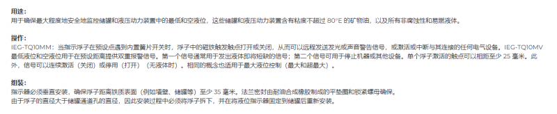 F.Lli Giacomello液位指示器,F.Lli Giacomello液位开关