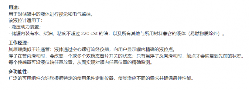 F.Lli Giacomello液位指示器,F.Lli Giacomello液位开关