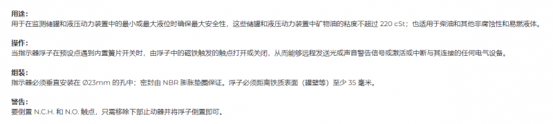 F.Lli Giacomello液位指示器,F.Lli Giacomello液位开关