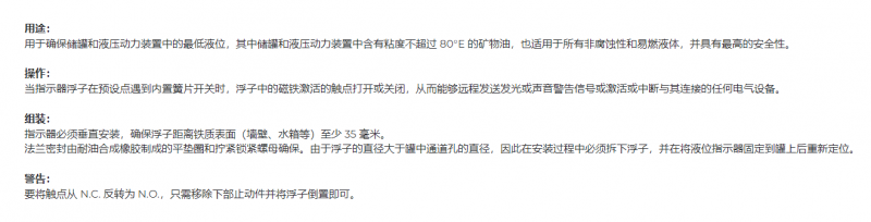 F.Lli Giacomello液位指示器,F.Lli Giacomello液位开关